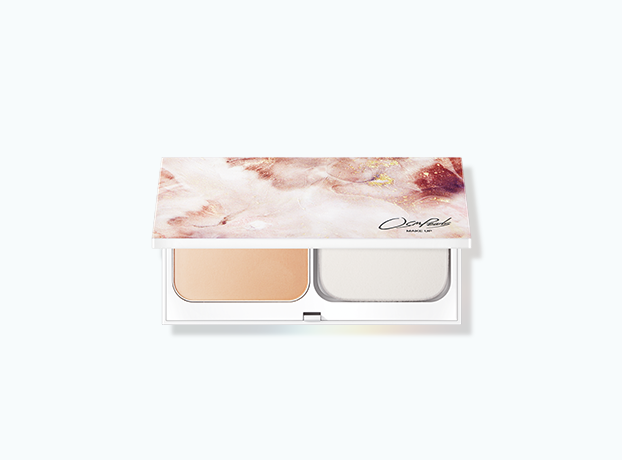 用粉撲取適量粉餅,與面部輕柔拍打按壓上妝,粉撲兩面均可以使用,請根據想要的妝效選擇粉撲面進行上妝。
